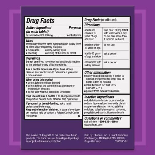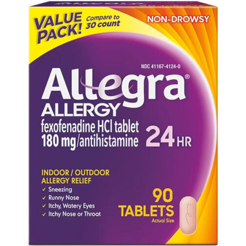 - Includes: One 90-count bottle of Allegra Adult Non-Drowsy Antihistamine Tablets for 24-Hour Allergy Relief
