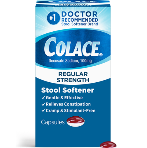 Colace® Regular Strength Capsules provide gentle, effective relief from occasional constipation. With 100mg of docusate sodium, they soften stools for easier, more comfortable bowel movements without harsh cramping. Ideal for adults and children over 12, Colace® works within 12 to 72 hours.