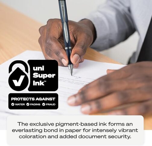 • uni Super Ink: Water- and fade-resistant ink helps you compose long-lasting, high-quality documents you can archive; Our ink pens offer protection against water, fading, and fraud